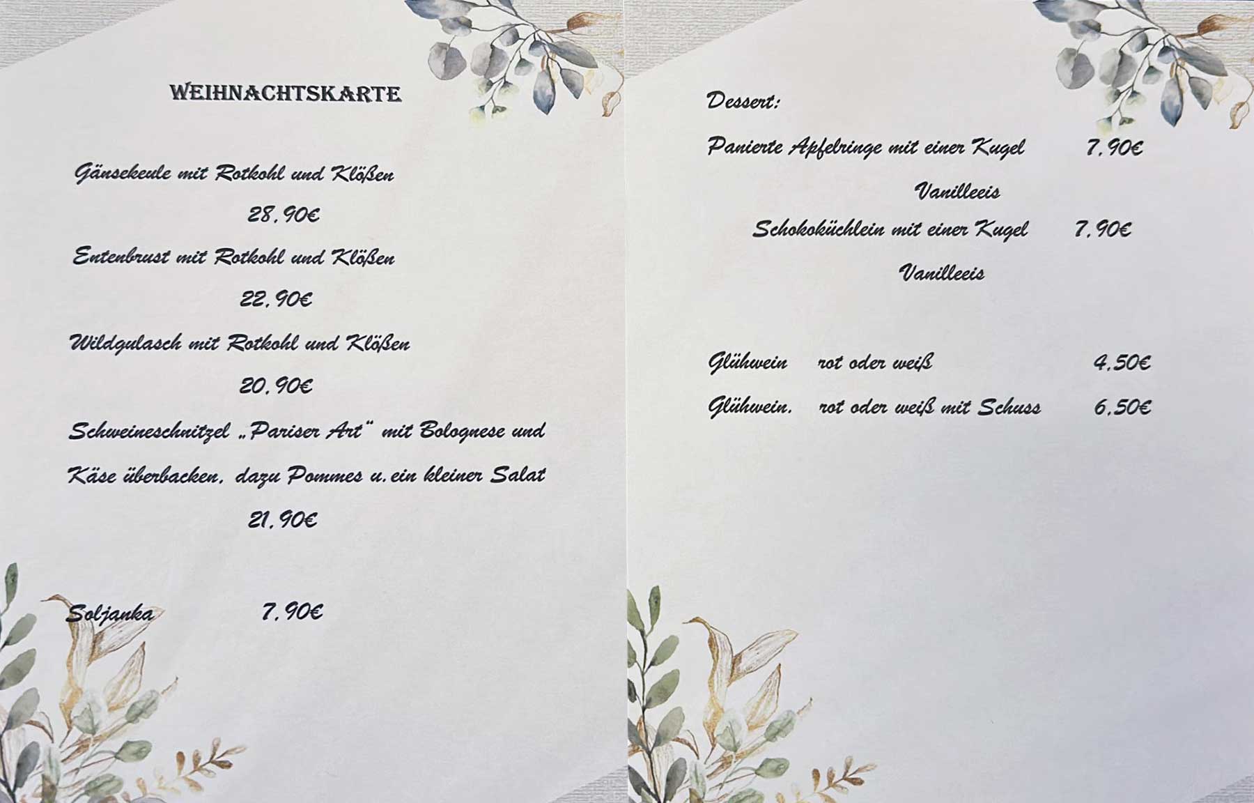 Hier können Sie unsere Speisekarte anschauen. (PDF Datei)
